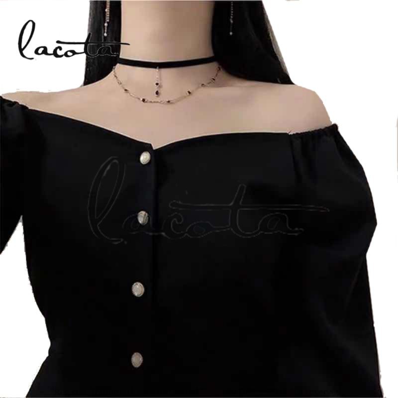 Lacota Korean Style Off Shoulder Elegancy Dress Long Sleeve Button Down Dress For Women Shopee Philippines